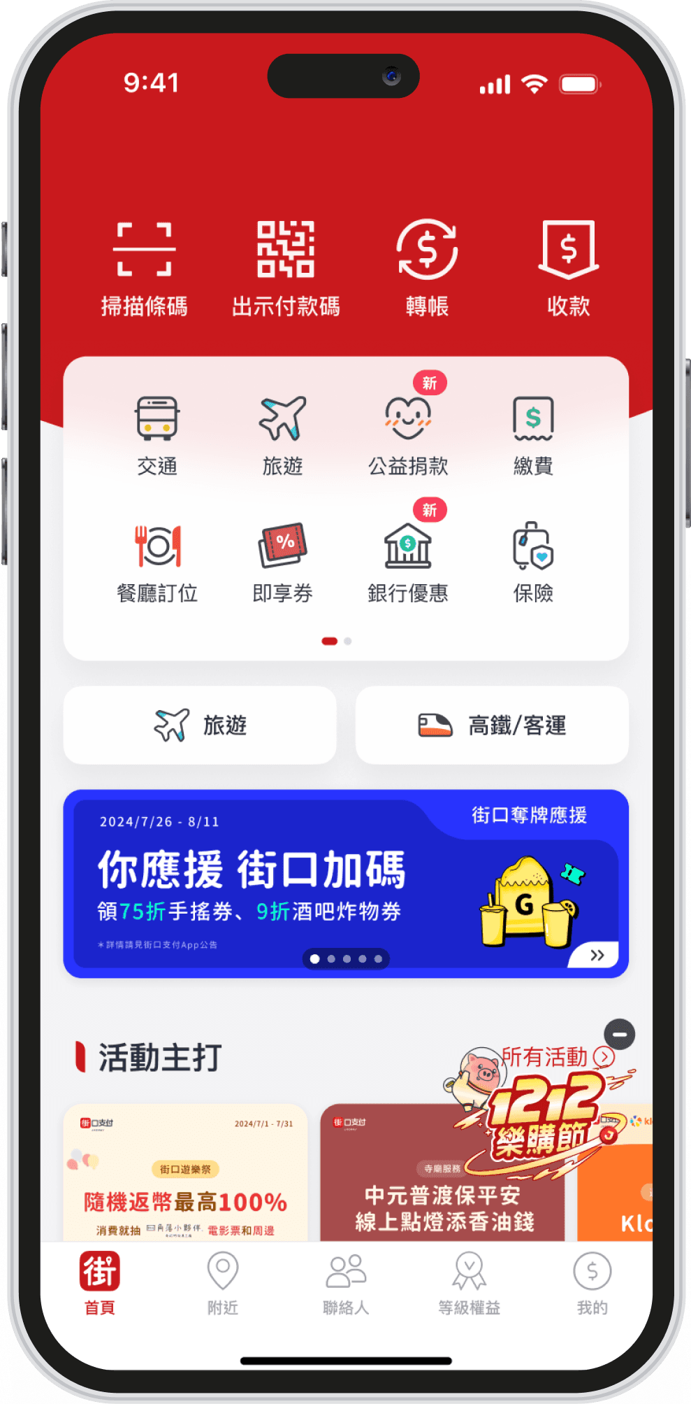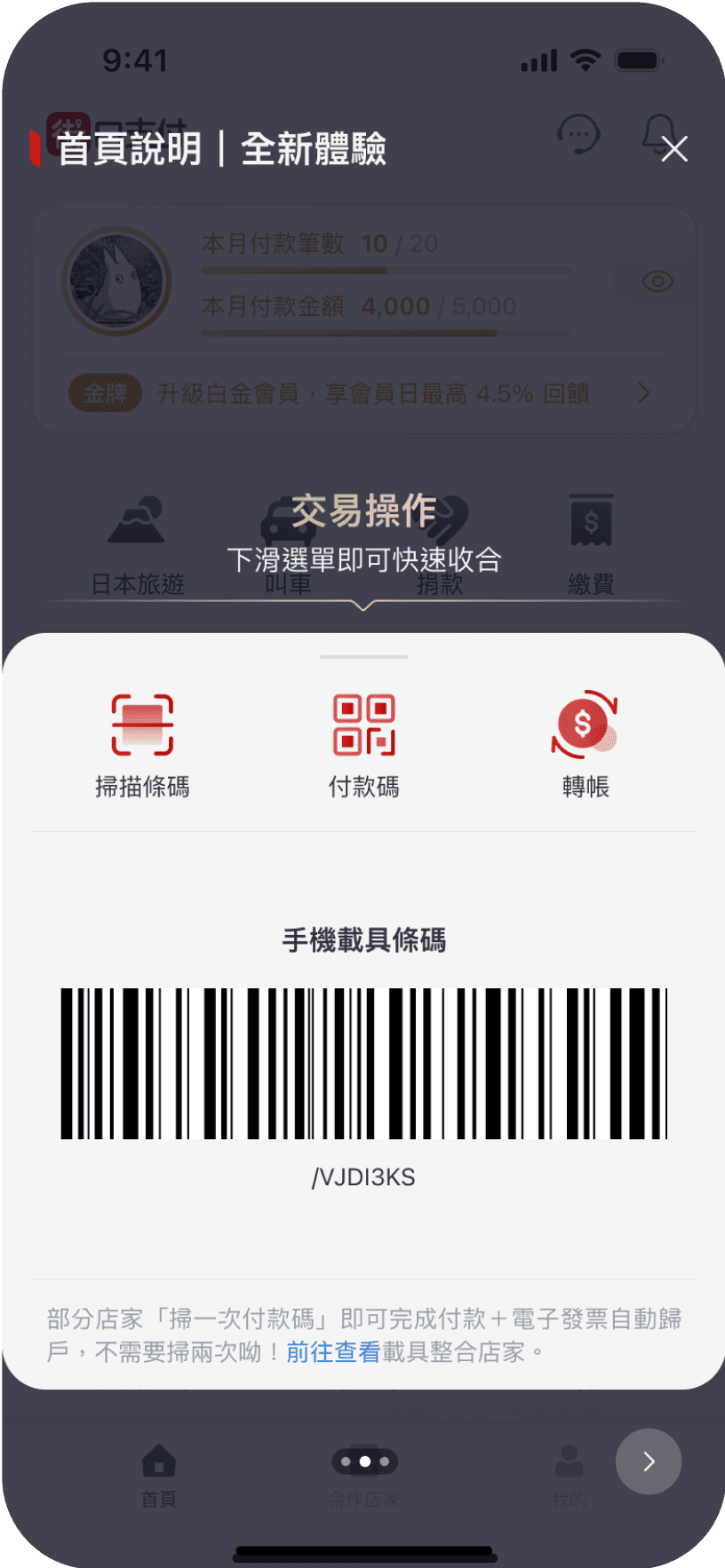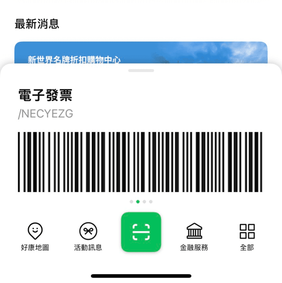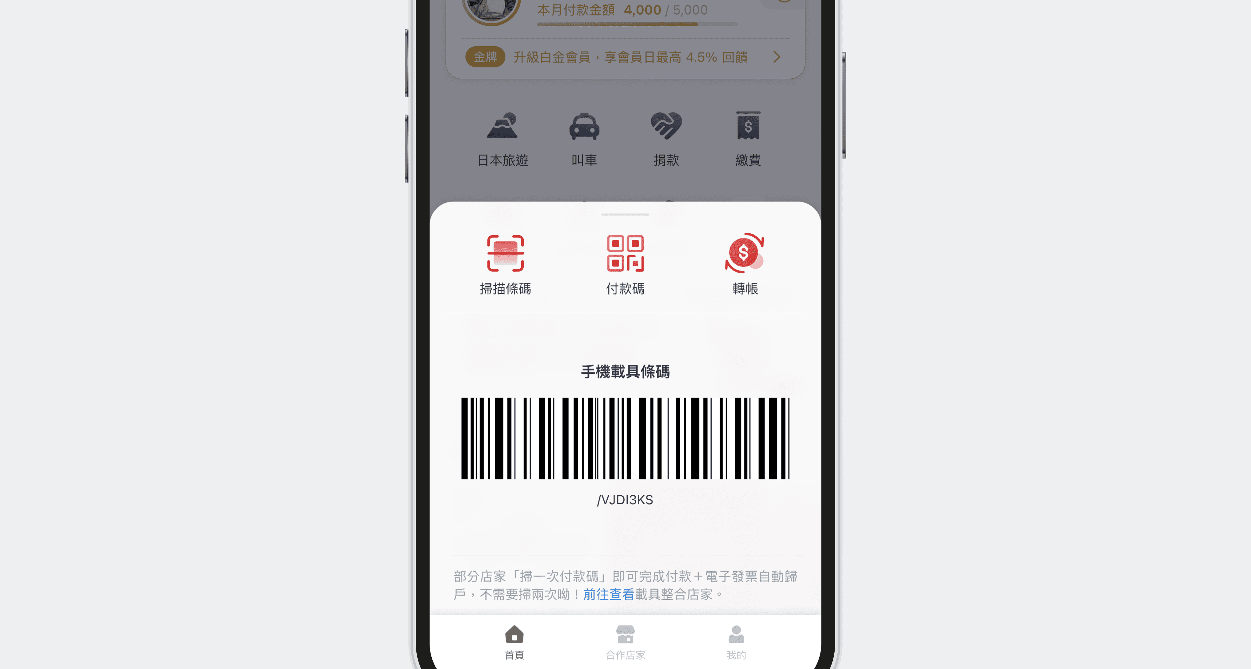於首頁操作並出示手機載具條碼